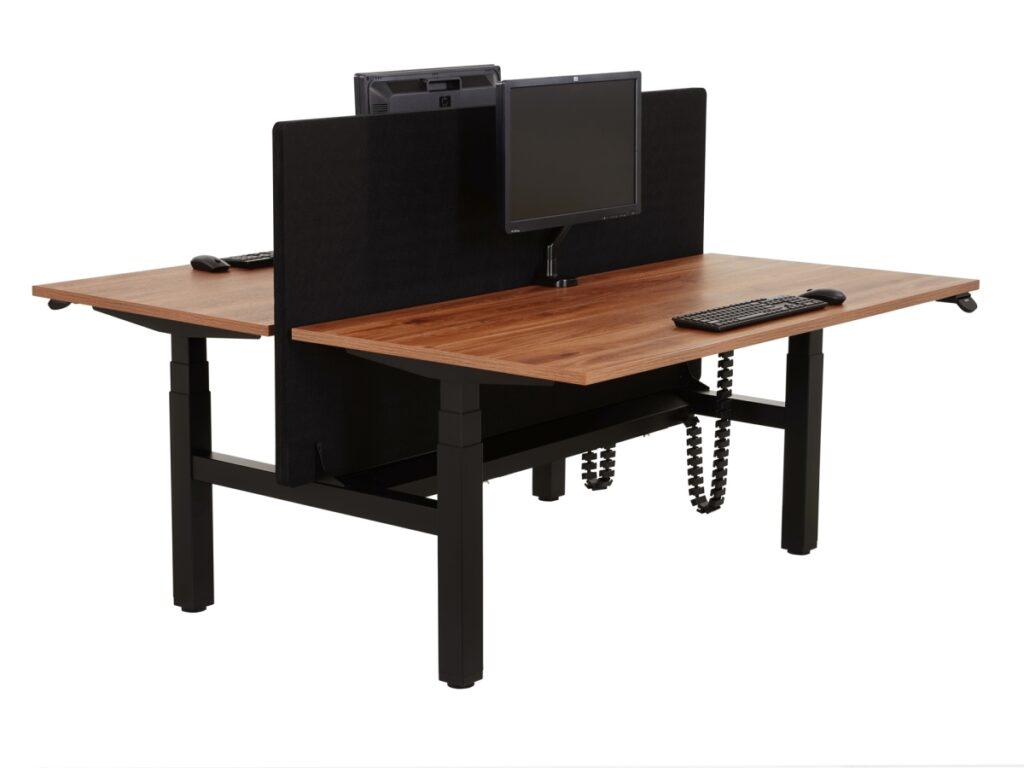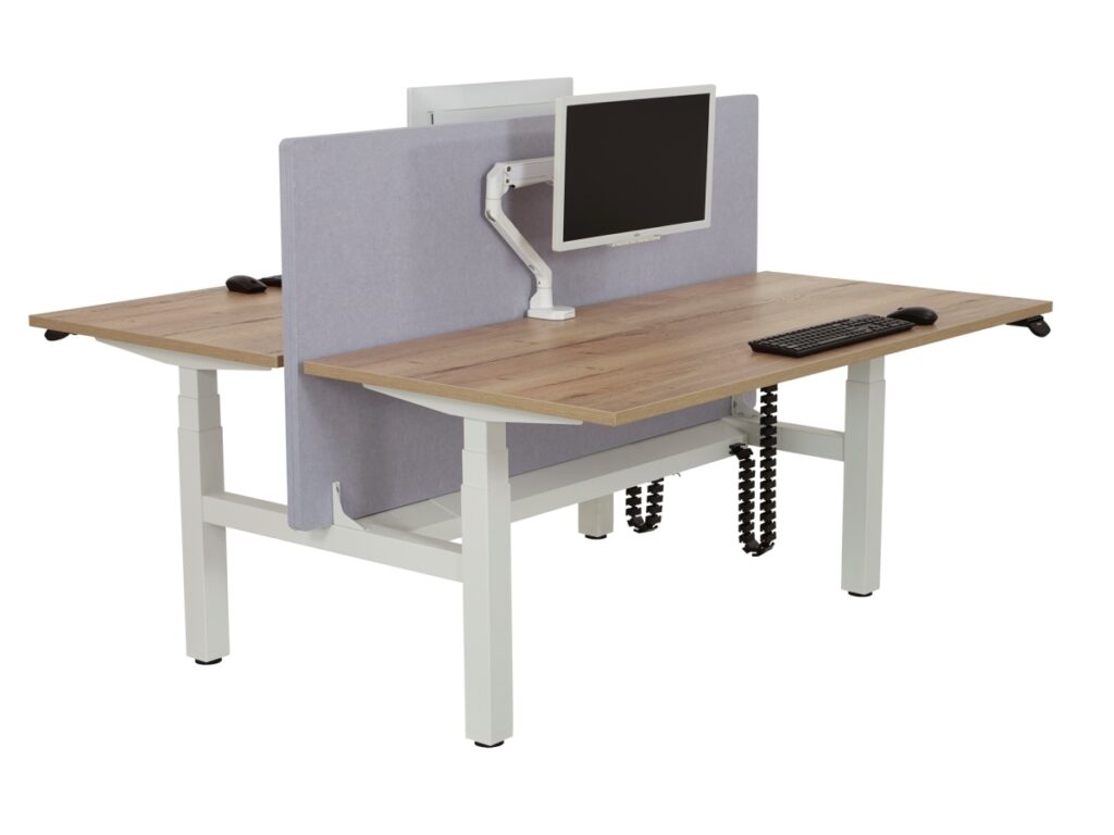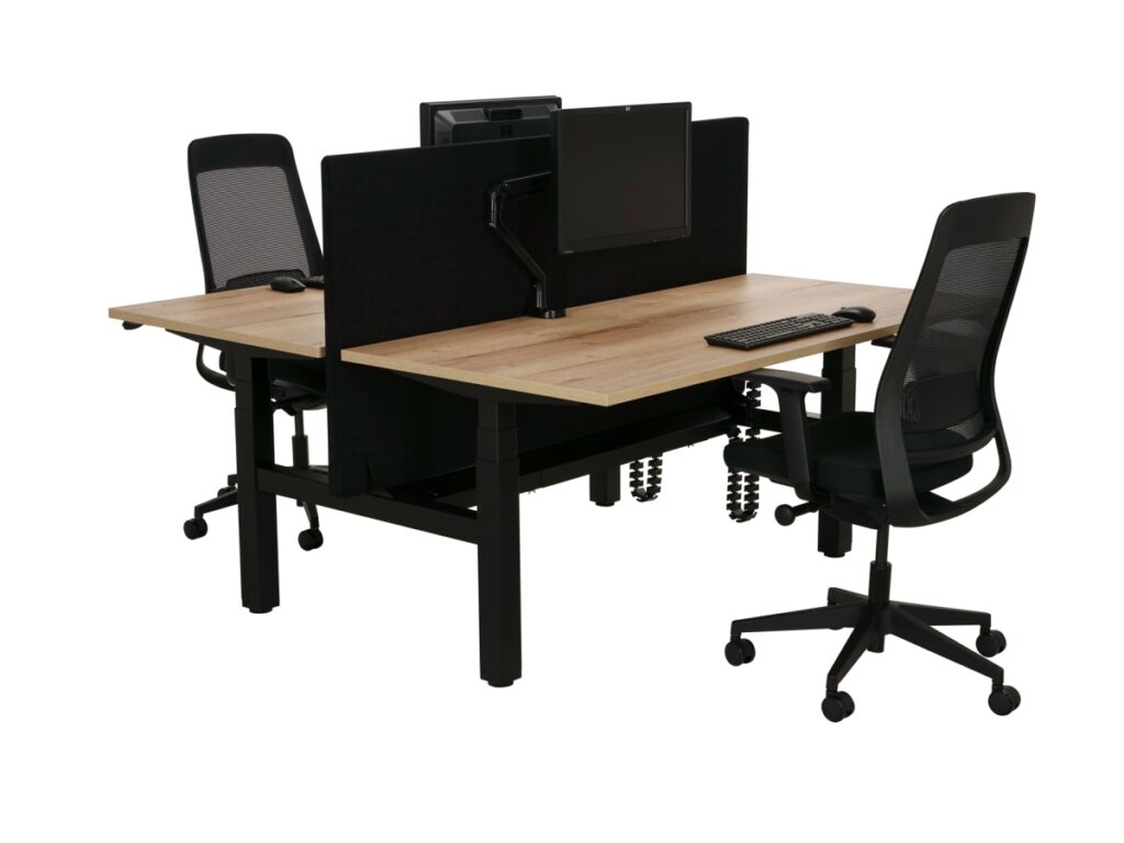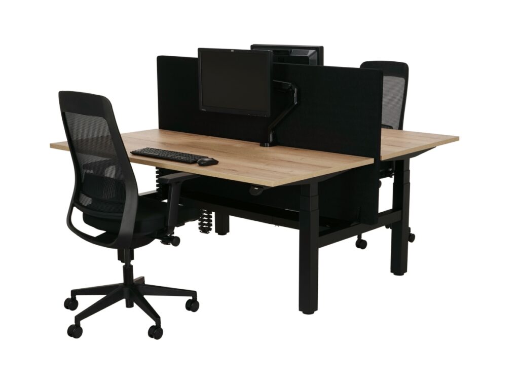 The Electric Duo Sit-Sta Desk Motion Pro from Myntwork is designed to provide professionals with a healthy and comfortable work environment that promotes collaboration. This advanced dual workstation features the latest technology and attractive design to meet all your needs. Discover the impressive features of this high-quality product:Health and ergonomics: The Electric Duo Sit-Sta Desk Motion Pro helps you and your colleagues promote active work posture and create a healthier work environment. By easily alternating between sitting and standing, you stimulate blood circulation, reduce physical complaints and increase concentration. This desk complies with occupational health and safety legislation in accordance with EN-1335, which means you can rely on an ergonomically sound workplace.Advanced Electric Height Adjustment: The Electric Duo Sit-Sta Desk Motion Pro is equipped with an advanced electric system that enables smooth, quiet and fast height adjustment. Both workstations can be independently height-adjusted, allowing each user to achieve the perfect sitting or standing height. The integrated display shows the current altitude and makes it easy to save your favorite altitudes.Promote collaboration: This duo desk is designed to encourage collaboration and communication between colleagues. The double workstation provides enough space for two people to work comfortably, while the open layout encourages interaction and collaboration.Stylish and modern design: the Electric Duo Sit-Sta Desk Motion Pro combines attractive and minimalist design with functionality and durability. The sturdy steel frame and high-quality table top ensure longevity, while the modern design beautifies any office space. Choose from a variety of color options to find a desk that perfectly fits your style and preference.Sustainable and environmentally conscious: Myntwork is committed to providing environmentally friendly and sustainable products. The Electric Duo Sit-Sta Desk Motion Pro is made of high-quality, recyclable materials, making you a responsible choice for the environment.
