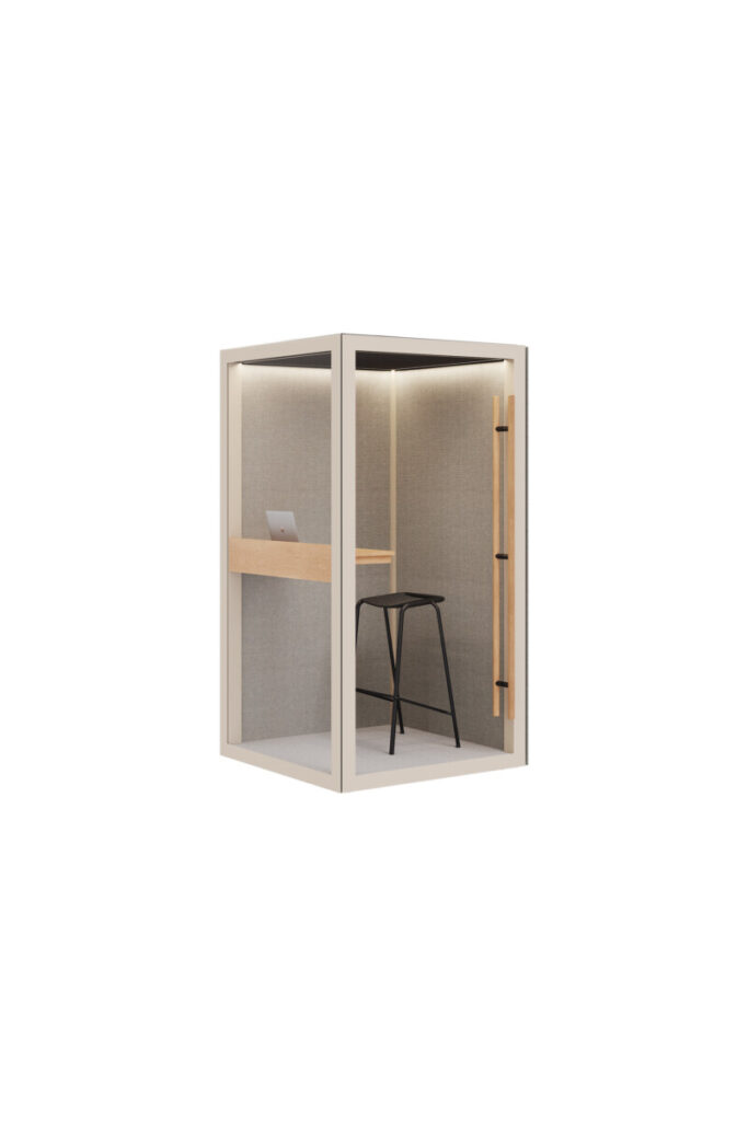 The Zen Pod Small is available in two versions – Essential and Advanced – both equipped with high-quality lighting, effective ventilation and thoughtful details. Each unit features integrated power supply and intuitive controls, without unnecessary complexity that would disrupt the harmony and balance of the space.Perfectly suited for phone calls, video meetings and concentrated work, the Zen Pod Small offers a welcome retreat space that invites you to stay there longer than strictly necessary.