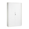 The SecureSlide Rolling Door Cabinet Half High from Myntwork offers a stylish and secure solution for storing your office supplies and documents. This functional and durable storage unit is a perfect addition to any office space. Discover the key features of the SecureSlide Trolley Door Cabinet Half High:Color and Material:The SecureSlide Roll Door Cabinet is available in three stylish colors: white, silver and black. The cabinet is made of high quality metal, providing solid construction and a sleek look. The doors are made of durable plastic, offering a stylish contrast to the metal cabinet.Dimensions: The SecureSlide Roller Door Cabinet has a width of 120 cm, a depth of 43 cm and a height of 105 cm. This half-height cabinet provides ample storage space without taking up too much floor space, making it ideal for both small and large office spaces.Security and lock:The roller door cabinet is equipped with a cylinder lock, allowing you to safely store your valuables and confidential documents. One key easily locks the cabinet, so you can leave your belongings with peace of mind.Acoustics: Although the SecureSlide Rolling Door Cabinet is not acoustical, the plastic doors offer quiet and smooth operation, allowing easy and quiet access to your belongings. This contributes to a quiet and pleasant work environment.Choose the SecureSlide Rolling Door Cabinet Half-High from Myntwork and enjoy stylish, secure and organized storage for all your office supplies. This storage cabinet not only provides practical storage space, but also contributes to a tidy and efficient work environment.